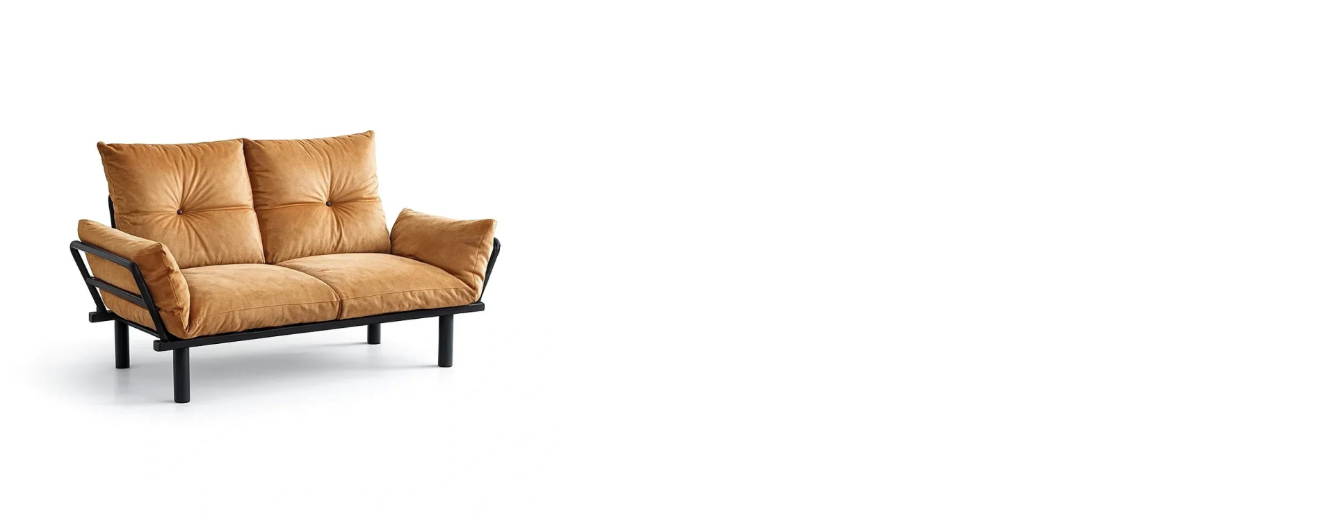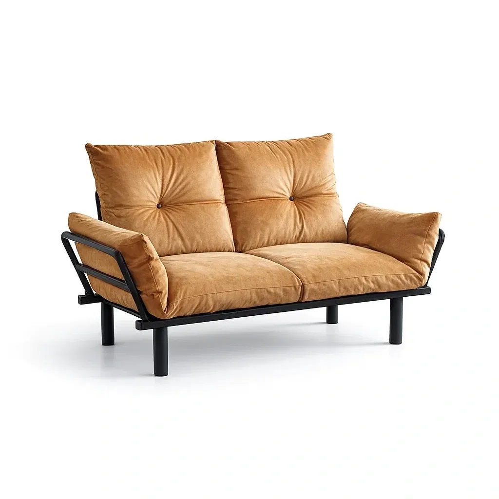 Canapé deux places en tissu vert avec accoudoirs et porte-gobelets