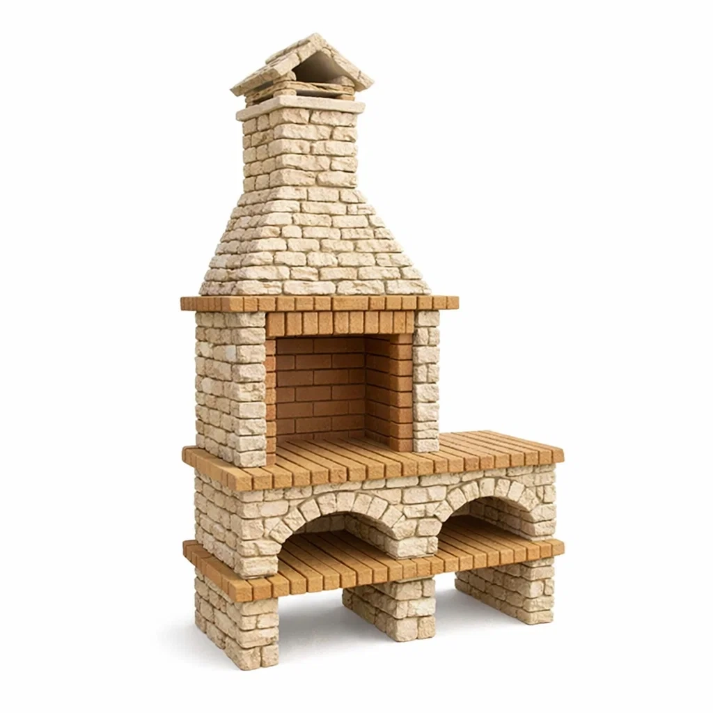 Barbecue en pierre pour extérieur avec grille en acier inoxydable marron